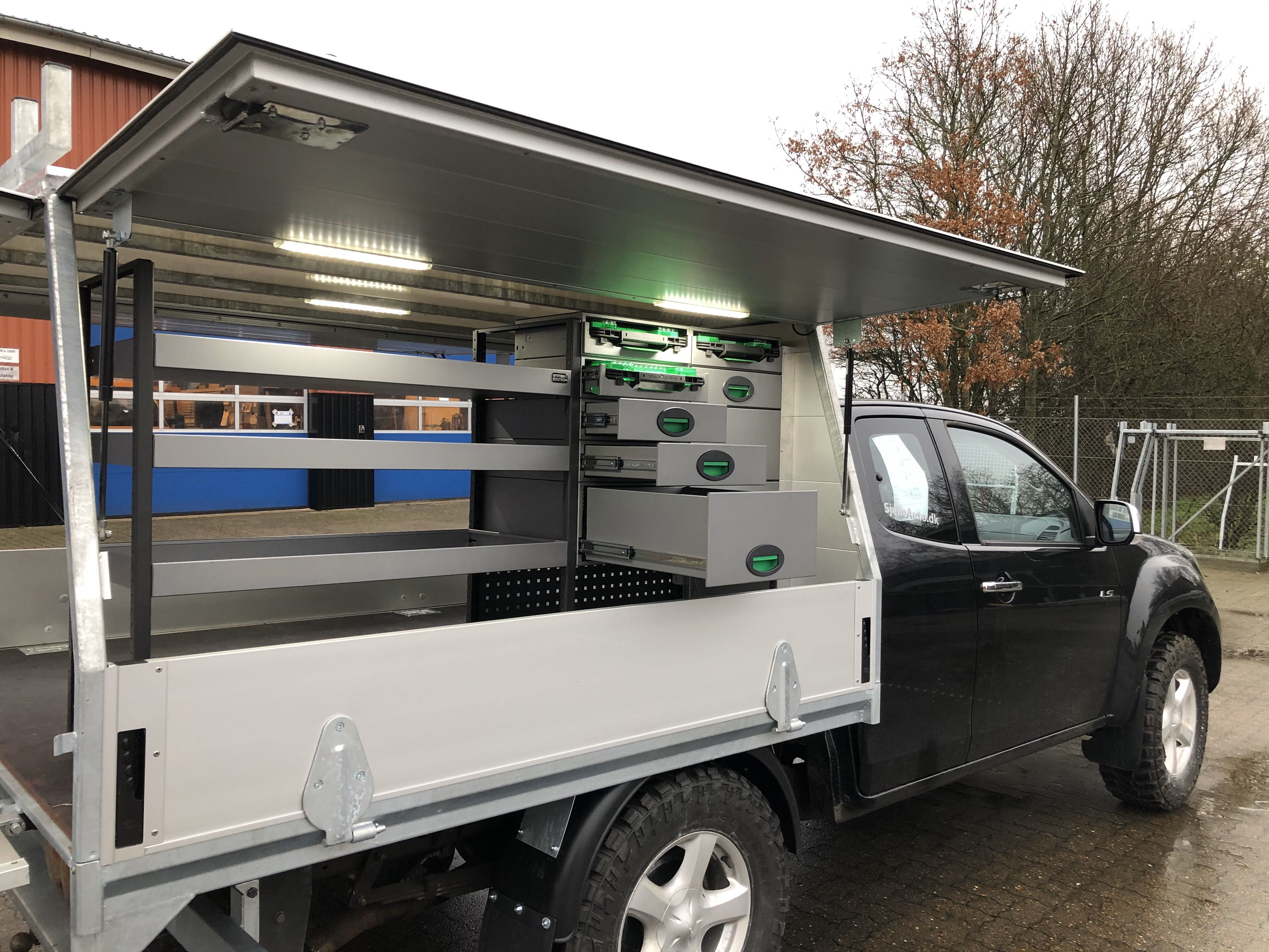 Hos Kolding Karosserifabrik tilbyder vi hjælp med indretning af din firmabil. Vores bilindretning er tilpasset den enkelte kunde. Vi har mange års erfaring i vores branche og har tidligere indrettet biler for mange forskellige erhverv.